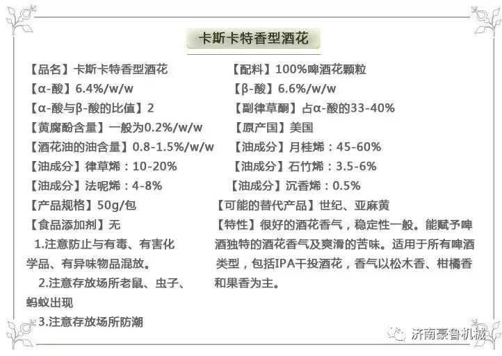 下面是該啤酒花的技術參數,專供精釀啤酒設備使用
